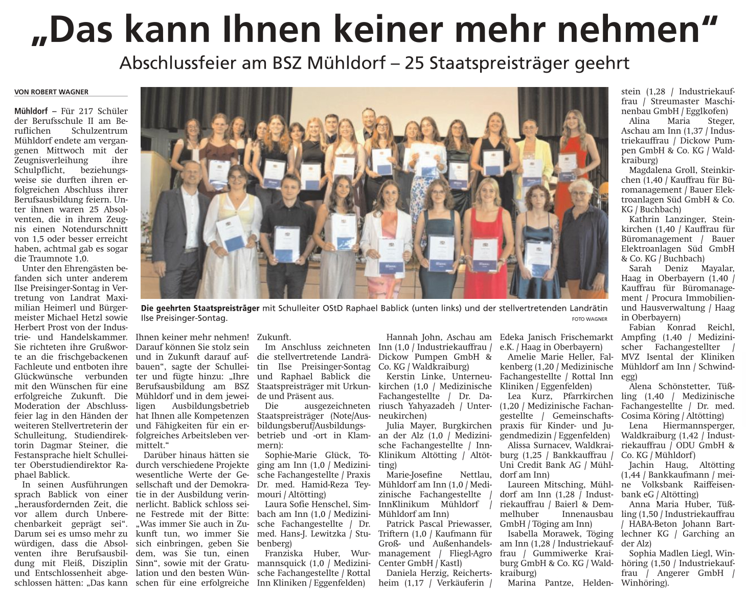 Abschlussfeier der Berufsschule II am BSZ Mühldorf